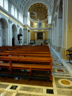 The interior is, now, extraordinarily shiny. It's actually wonderfully light. The floors have been paved in an extraordinarily lovely marble pattern.